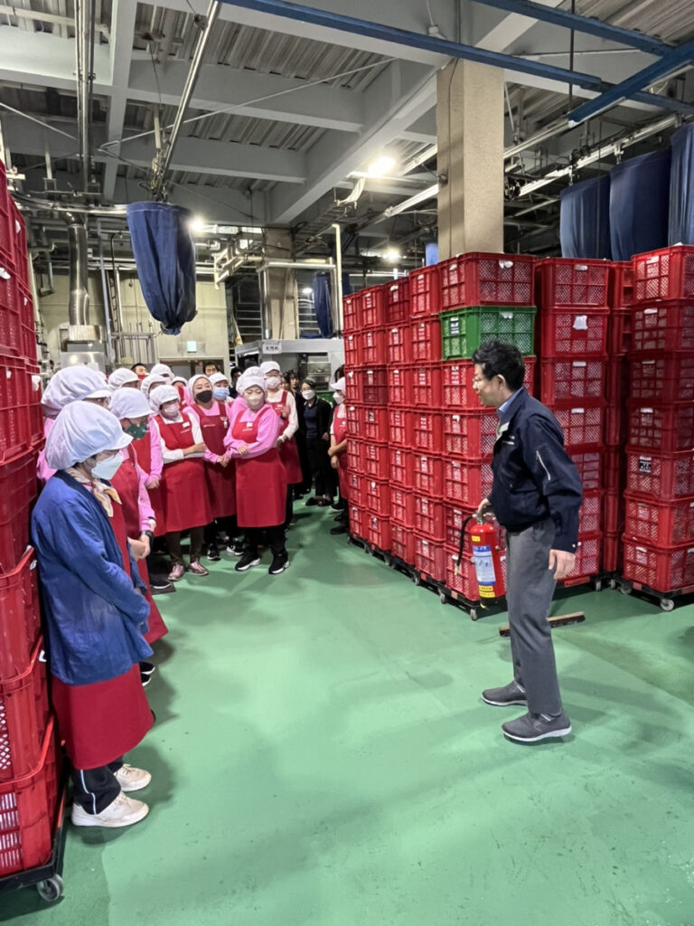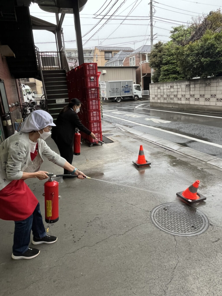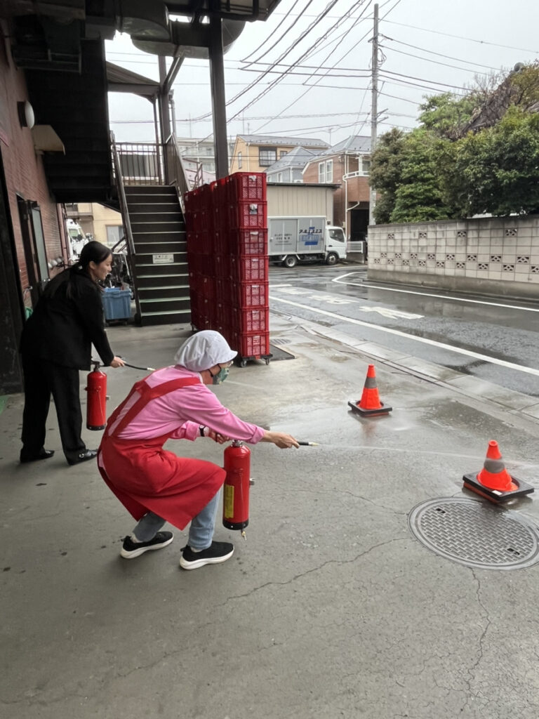 10月に社内にて避難訓練を実施しました。 今回は1階工場での火災を想定した訓練で、社員の皆様には迅速かつ冷静な避難行動にご協力いただきました。 また、消火器の使用方法についての実技講習も行い、実際に消火器を使った初期消火の練習を体験していただきました。 いざという時に備え、今後も定期的な訓練を通じて防災意識の向上に努めてまいります。 ご参加いただいた皆様、ありがとうございました。