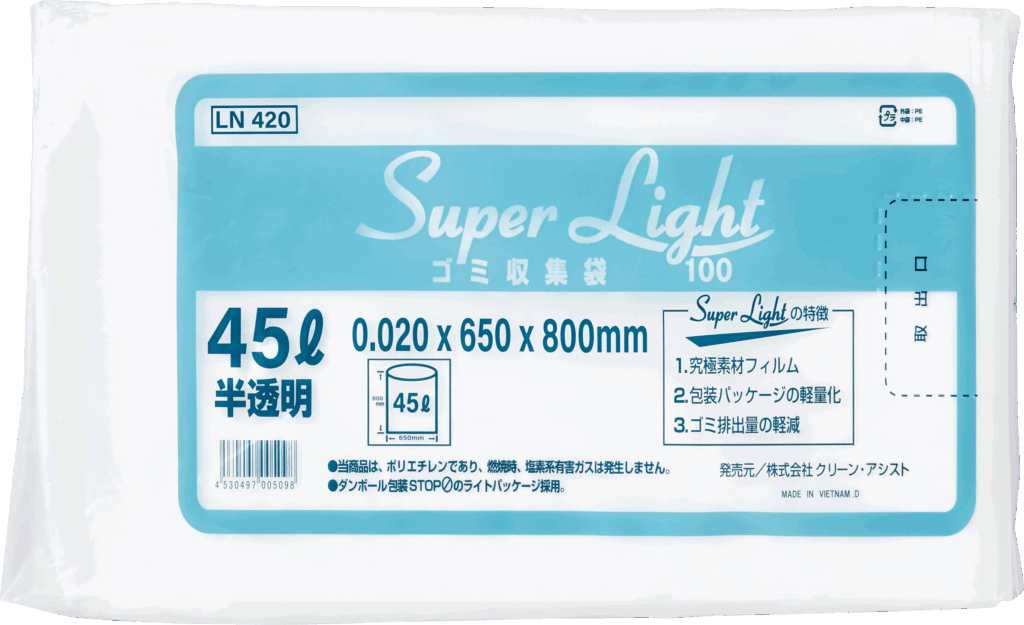 45ℓ:650×800mm 厚さ:0.02mm 1パック100枚入り